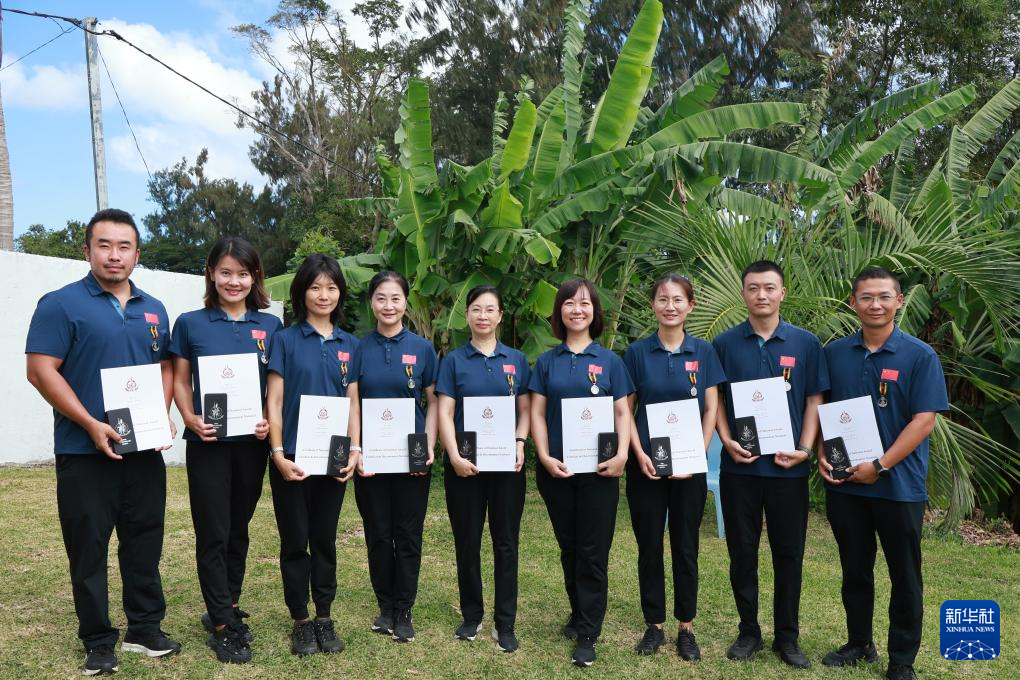 7月30日,在瓦努阿圖首都維拉港,中國援瓦醫(yī)療隊(duì)隊(duì)員手持證書合影。